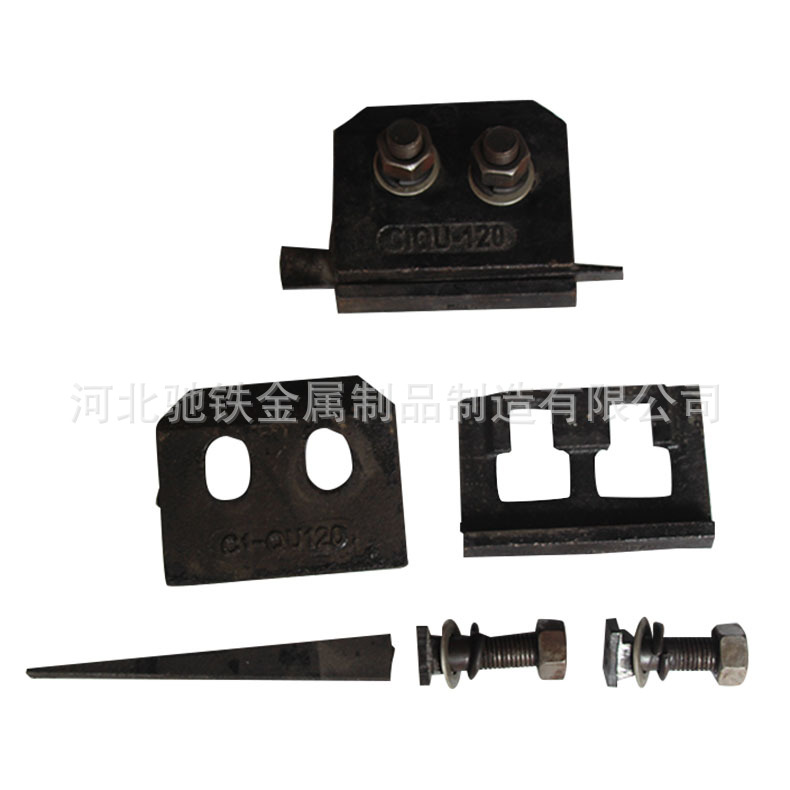 壓軌器:也稱作焊接型壓軌器、焊接型鋼軌固定裝置、鋼梁壓軌器、焊接型壓板無論怎么稱呼其作用只有一個(gè)就是壓緊固定鋼軌。